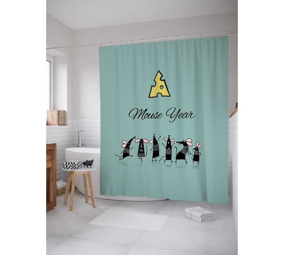 Штора (занавеска) для ванной JoyArty "Год модных мышат" из сатена, 180х200 см sc_378409