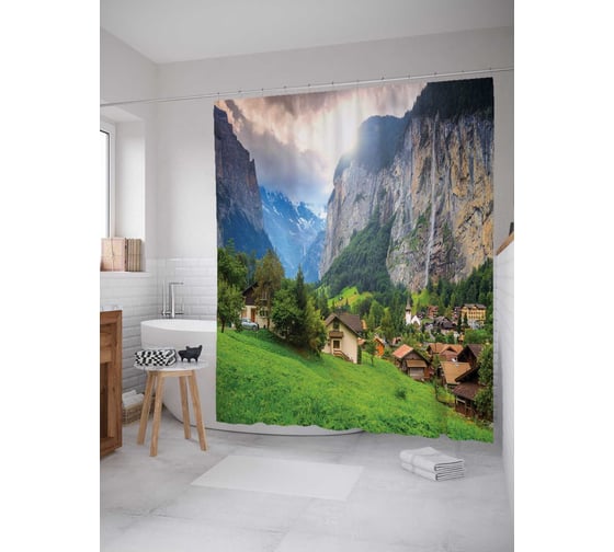 Сопутствующие товары для шторки-занавески JOYARTY Горное поселение из сатена, 180х200 см с крючками