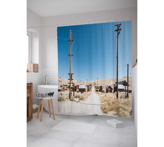 Штора (занавеска) для ванной JoyArty "Город призрак" из сатена, 180х200 см с крючками, sc_37947