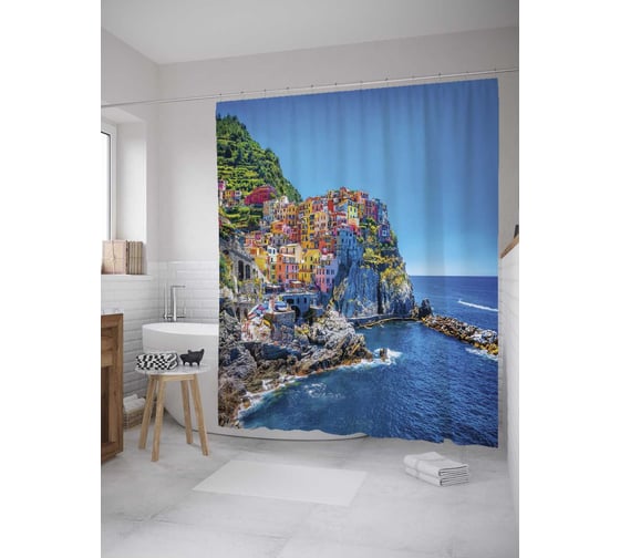 Штора (занавеска) для ванной JoyArty "Город в скале" из сатена, 180х200 см с крючками, sc_10546