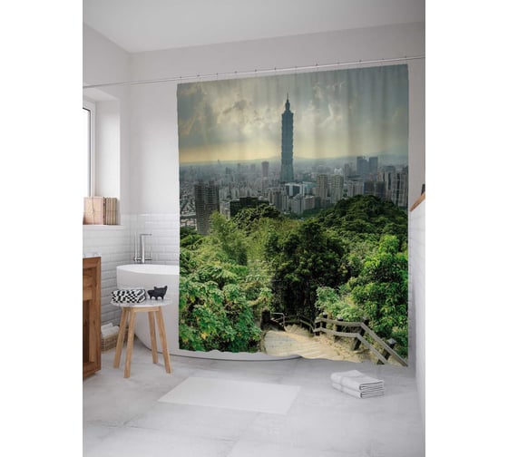 Штора (занавеска) для ванной JoyArty "Городские джунгли в Тайбэе" из сатена, 180х200 см с крючками, sc_37479