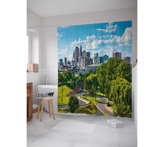Сопутствующие товары для шторки-занавески JOYARTY Городской парк из сатена, 180х200 см с крючками