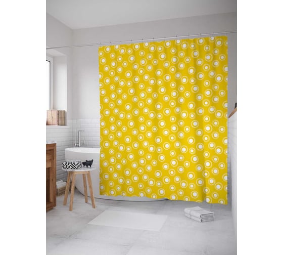 Штора (занавеска) для ванной JoyArty "Горошек в зарисовках" из сатена, 180х200 см с крючками, sc_28969