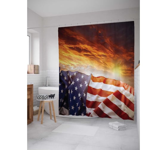 Штора (занавеска) для ванной JoyArty "Государственный флаг" из сатена, 180х200 см с крючками, sc_20686