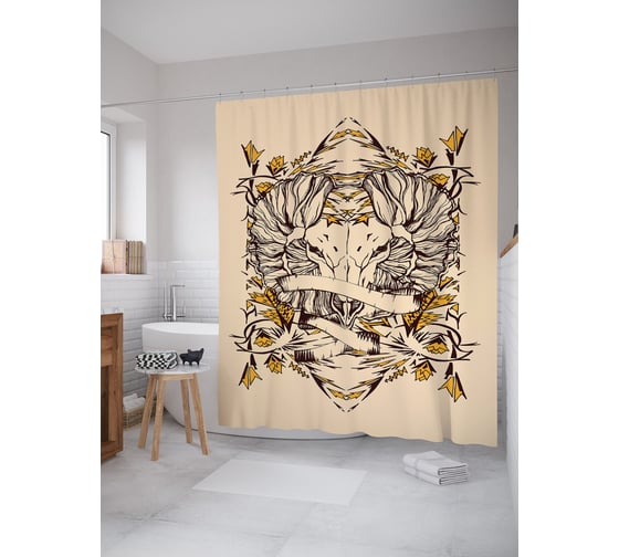 Штора (занавеска) для ванной JoyArty "Готический Овен" из сатена, 180х200 см с крючками, sc_58980