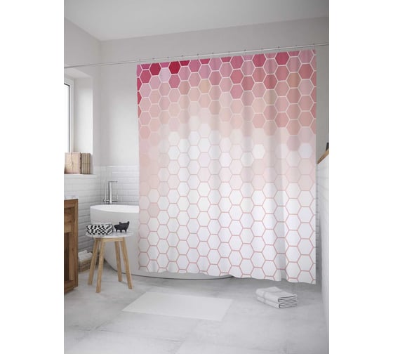 Штора (занавеска) для ванной JoyArty "Градиентные соты" из сатена, 180х200 см с крючками, sc_35519