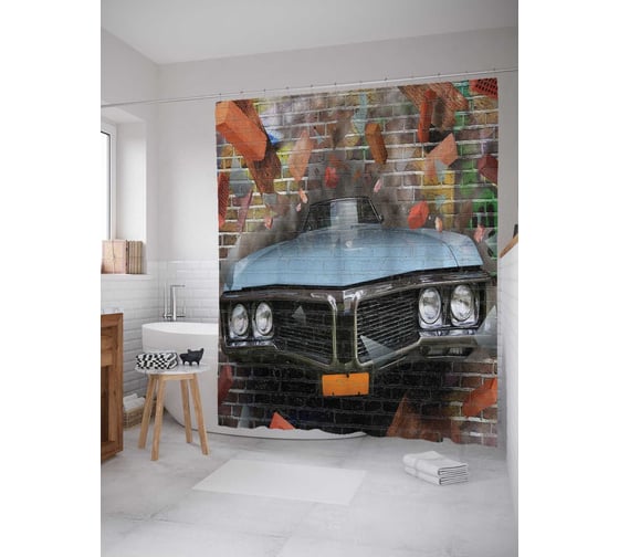 Штора (занавеска) для ванной JoyArty "Граффити автомобиль" из сатена, 180х200 см с крючками, sc_18224