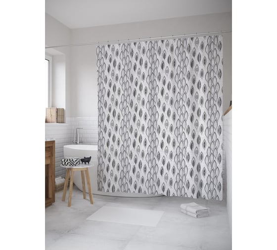 Штора (занавеска) для ванной JoyArty "Графические листья" из сатена, 180х200 см с крючками, sc_59100