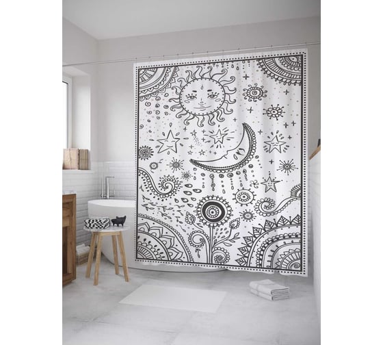 Сопутствующие товары для шторки-занавески JOYARTY Графические солнце и луна из сатена, 180х200 см с крючками
