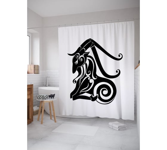 Штора (занавеска) для ванной JoyArty "Графический Козерог" из сатена, 180х200 см с крючками, sc_58939