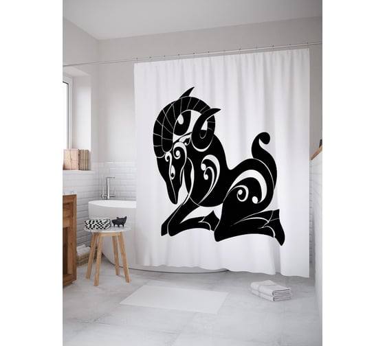 Штора (занавеска) для ванной JoyArty "Графический Овен" из сатена, 180х200 см с крючками, sc_58988