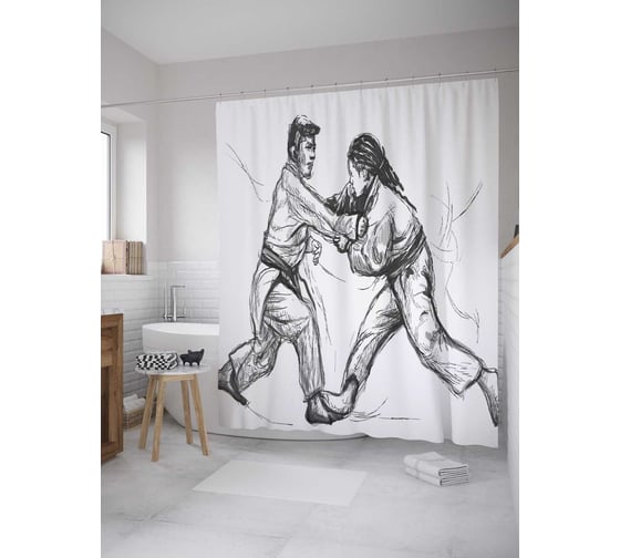 Штора (занавеска) для ванной JoyArty "Графика борьбы" из сатена, 180х200 см с крючками, sc_32938