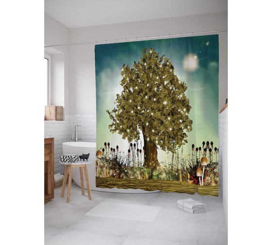 Сопутствующие товары для шторки-занавески JOYARTY Грибная поляна из сатена, 180х200 см с крючками