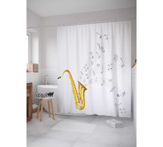 Штора (занавеска) для ванной JoyArty "Громкая мелодия" из сатена, 180х200 см с крючками, sc_14233