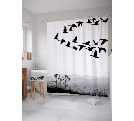Штора (занавеска) для ванной JoyArty "Гуси летят клином" из сатена, 180х200 см с крючками, sc_58609