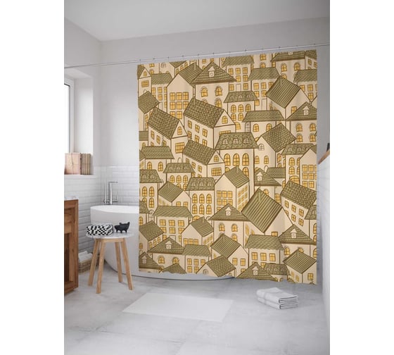 Штора (занавеска) для ванной JoyArty "Густонаселенный город" из сатена, 180х200 см с крючками, sc_37477