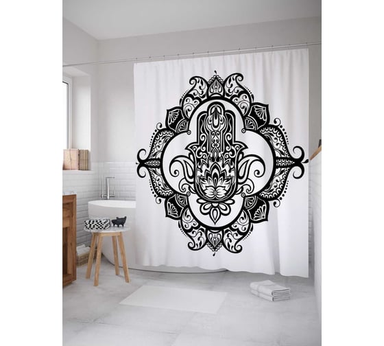 Сопутствующие товары для шторки-занавески JOYARTY Хамса в орнаментальной виньетке из сатена, 180х200 см с крючками