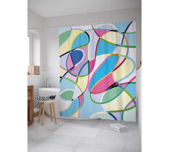Штора (занавеска) для ванной JoyArty "Хаотичные линии" из сатена, 180х200 см с крючками, sc_21416