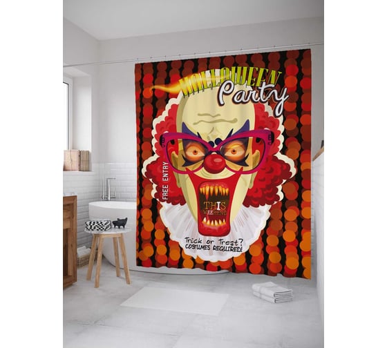 Штора (занавеска) для ванной JoyArty "Хеллоуинская вечеринка" из сатена, 180х200 см с крючками, sc_29746