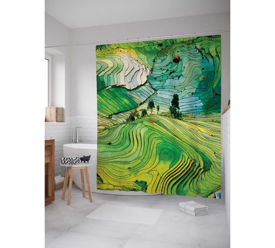 Штора (занавеска) для ванной JoyArty "Холмы грез" из сатена, 180х200 см с крючками, sc_7124