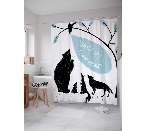 Штора (занавеска) для ванной JoyArty "Хорошие новости" из сатена, 180х200 см с крючками, sc_37241