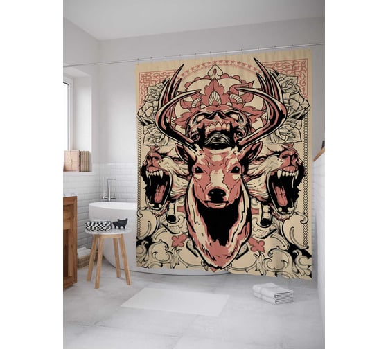 Штора (занавеска) для ванной JoyArty "Храбрый олень" из сатена, 180х200 см с крючками, sc_15535