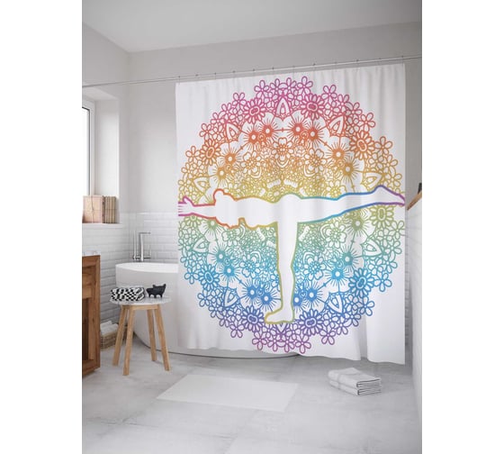 Штора (занавеска) для ванной JoyArty "Идеальная йога" из сатена, 180х200 см с крючками, sc_37531