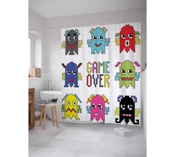 Штора (занавеска) для ванной JoyArty "Игра окончена" из сатена, 180х200 см с крючками, sc_16783