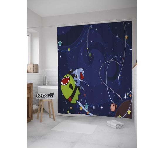 Штора (занавеска) для ванной JoyArty "Игра в космосе" из сатена, 180х200 см с крючками, sc_33515