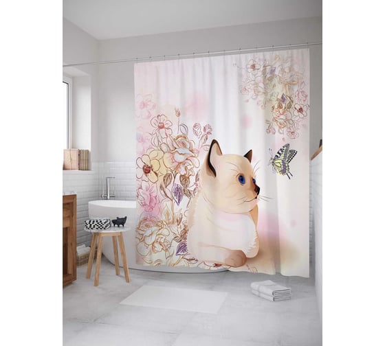 Сопутствующие товары для шторки-занавески JOYARTY Игривый котик из сатена, 180х200 см с крючками