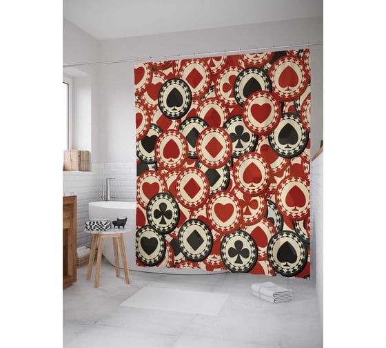 Штора (занавеска) для ванной JoyArty "Игровые фишки" из сатена, 180х200 см с крючками, sc_11288