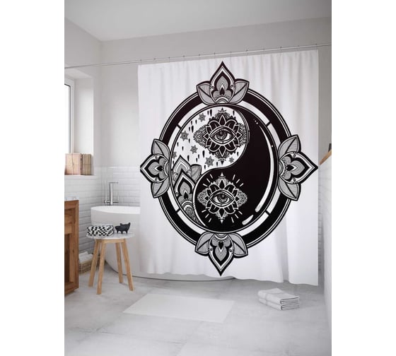 Сопутствующие товары для шторки-занавески JOYARTY Инь-янь в кругу из сатена, 180х200 см с крючками
