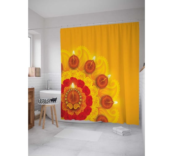 Штора (занавеска) для ванной JoyArty "Индийский праздник" из сатена, 180х200 см с крючками, sc_26650
