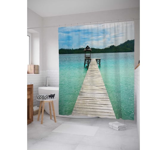 Штора (занавеска) для ванной JoyArty "Индивидуальный пирс с навесом" из сатена, 180х200 см с крючками, sc_13850
