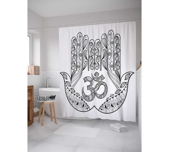 Штора (занавеска) для ванной JoyArty "Индуистская хамса" из сатена, 180х200 см с крючками, sc_19277