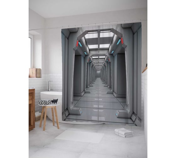 Штора (занавеска) для ванной JoyArty "Инопланетная станция" из сатена, 180х200 см с крючками, sc_21667