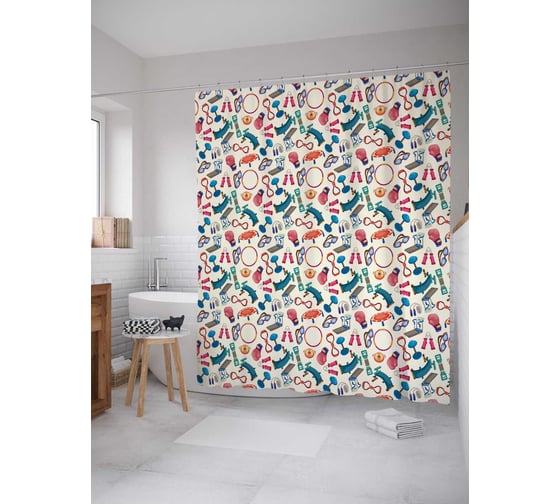 Штора (занавеска) для ванной JoyArty "Инструменты спорта" из сатена, 180х200 см с крючками, sc_36925