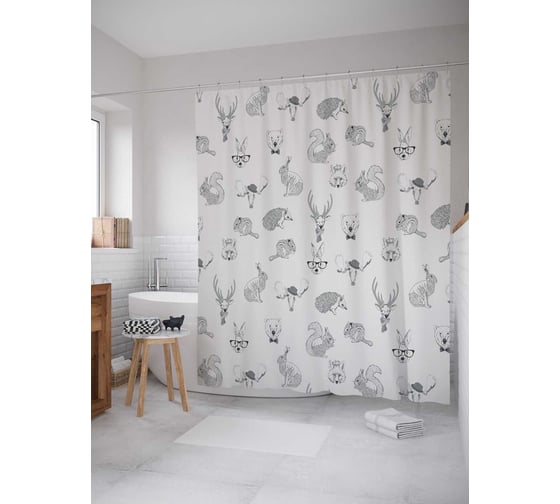 Сопутствующие товары для шторки-занавески JOYARTY Интеллигентные звери из сатена, 180х200 см с крючками