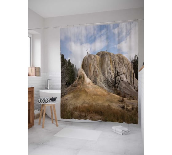 Штора (занавеска) для ванной JoyArty "Интересная гора" из сатена, 180х200 см с крючками, sc_17978