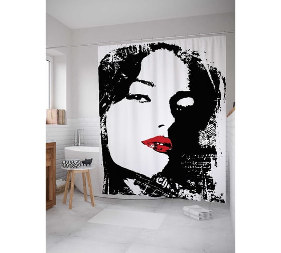 Штора (занавеска) для ванной JoyArty "Искусительный облик" из сатена, 180х200 см с крючками, sc_3398