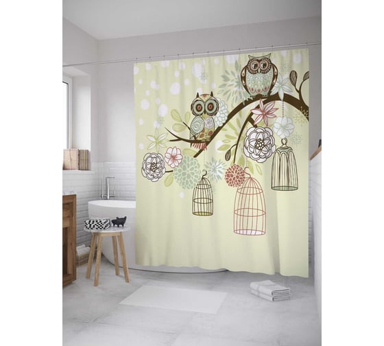 Штора (занавеска) для ванной JoyArty "Испуганные совы" из сатена, 180х200 см с крючками, sc_10825