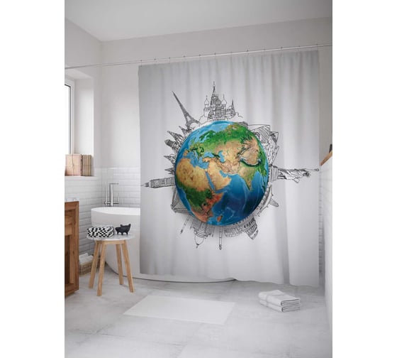 Штора (занавеска) для ванной JoyArty "Исторические строения на планете" из сатена, 180х200 см с крючками, sc_37976