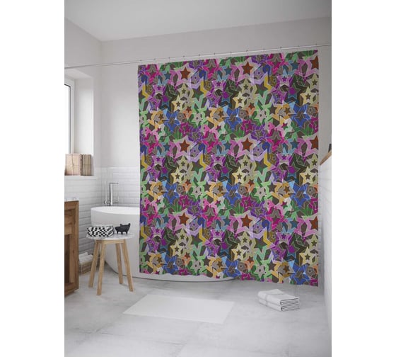 Штора (занавеска) для ванной JoyArty из сатена, 180х200 см с крючками sc_32642