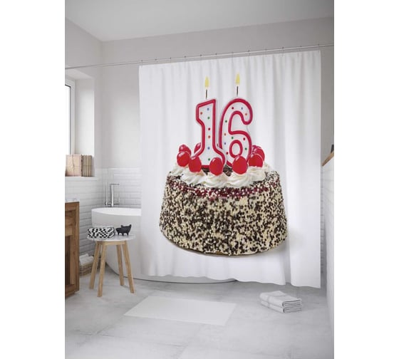 Сопутствующие товары для шторки-занавески JOYARTY Клубнички на торте из сатена, 180х200 см с крючками