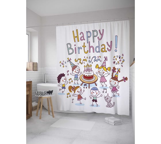 Штора (занавеска) для ванной JoyArty из сатена, 180х200 см с крючками sc_34399