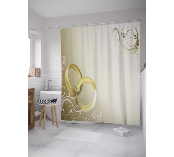 Штора (занавеска) для ванной JoyArty из сатена, 180х200 см с крючками sc_35136