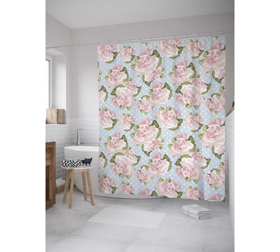 Штора (занавеска) для ванной JoyArty из сатена, 180х200 см с крючками sc_35877