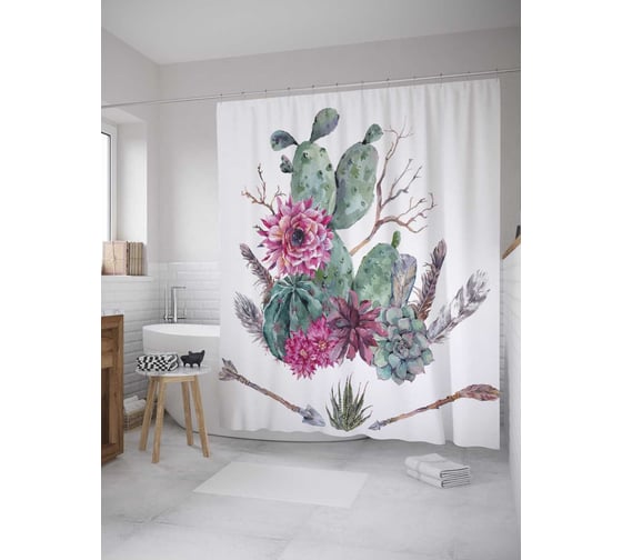 Штора (занавеска) для ванной JoyArty из сатена, 180х200 см с крючками sc_36161