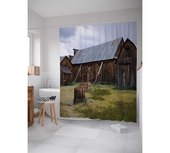 Штора (занавеска) для ванной JoyArty из сатена, 180х200 см с крючками sc_36822