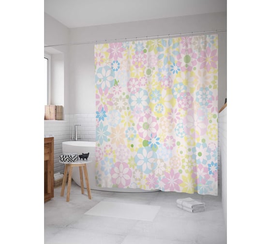 Штора (занавеска) для ванной JoyArty из сатена, 180х200 см с крючками sc_38074